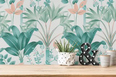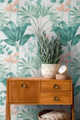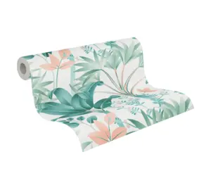 Die A.S. Création AP Arcade Vliestapete 391723 vereint modernes Design mit floralen Akzenten in einem einzigartigen Farbmix aus Grün, Weiß, Orange und Beige. Das hochwertige Vliesmaterial sorgt für eine besonders einfache Verarbeitung und ermöglicht ein restlos trockenes Abziehen bei einem späteren Tapetenwechsel.