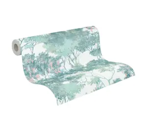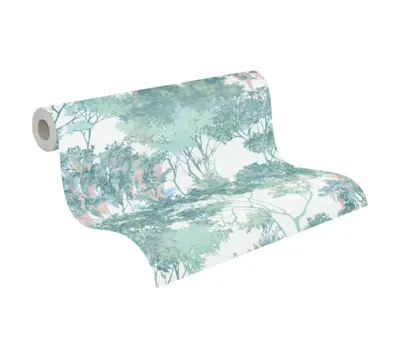 Die Vliestapete 391733 aus der Kollektion AP Arcade von A.S. Création verleiht Ihrem Zuhause eine frische und farbenfrohe Atmosphäre. Das florale Design in Grüntönen, kombiniert mit Weiß, Orange und Blau, bringt lebendige Akzente an jede Wand und eignet sich ideal für verschiedene Räume wie Badezimmer, Büro, Küche, Schlafzimmer oder Wohnzimmer.