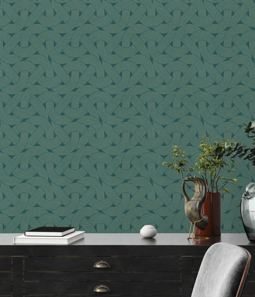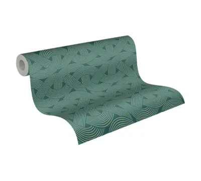 AP Arcade Vliestapete 391753 in Petrol-Gold – Edler Art Deco Stil