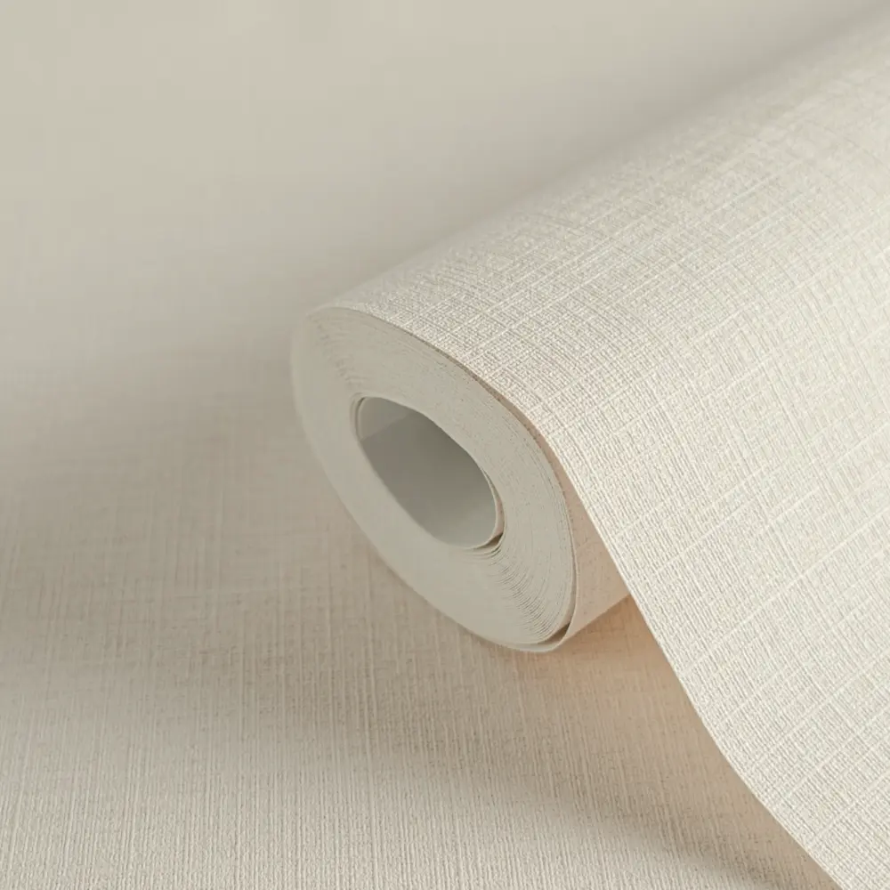 Mit ihrem natürlichen Look setzt diese Vinyltapete in Creme stilsichere Akzente und bringt moderne, ruhige Eleganz in jeden Raum.