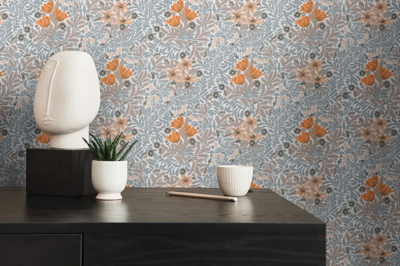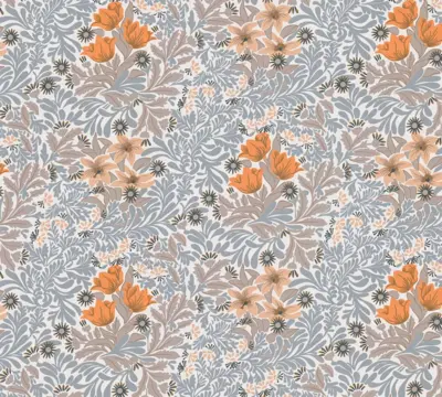 Die A.S. Création Art of Eden Vliestapete 390574 überzeugt mit einem modernen floralen Design in Grau, Orange, Weiß und Beige. Das matte Oberflächenfinish unterstreicht den stilvollen Charakter und schafft eine einladende Atmosphäre in jedem Raum – ob Wohnzimmer, Schlafzimmer, Büro, Küche oder Bad.