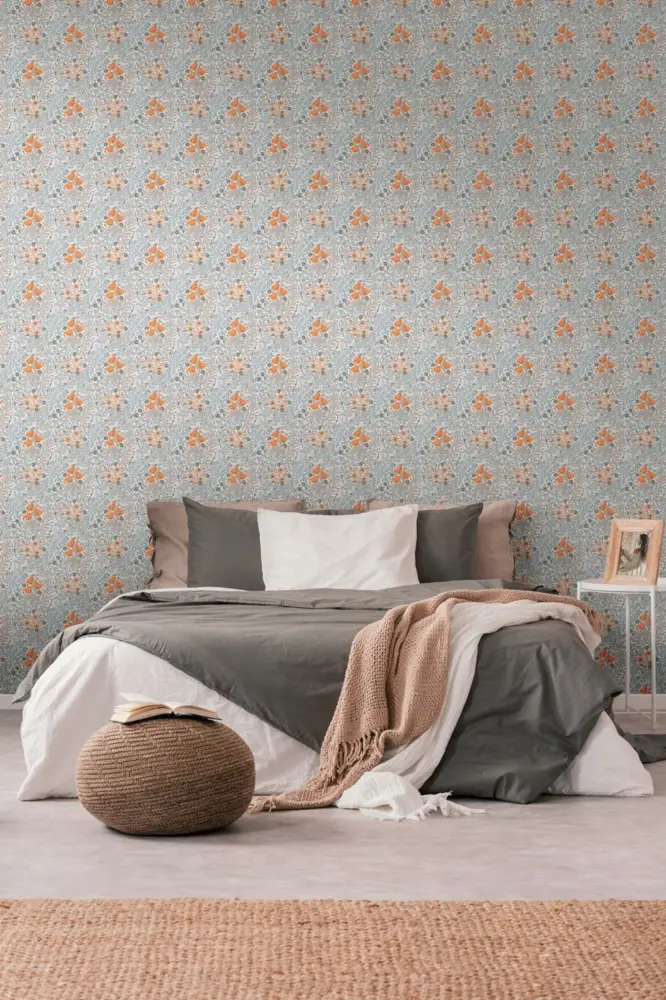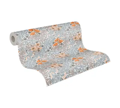 Edle Vliestapete Art of Eden 390574 – Florale Akzente in Grau und Orange