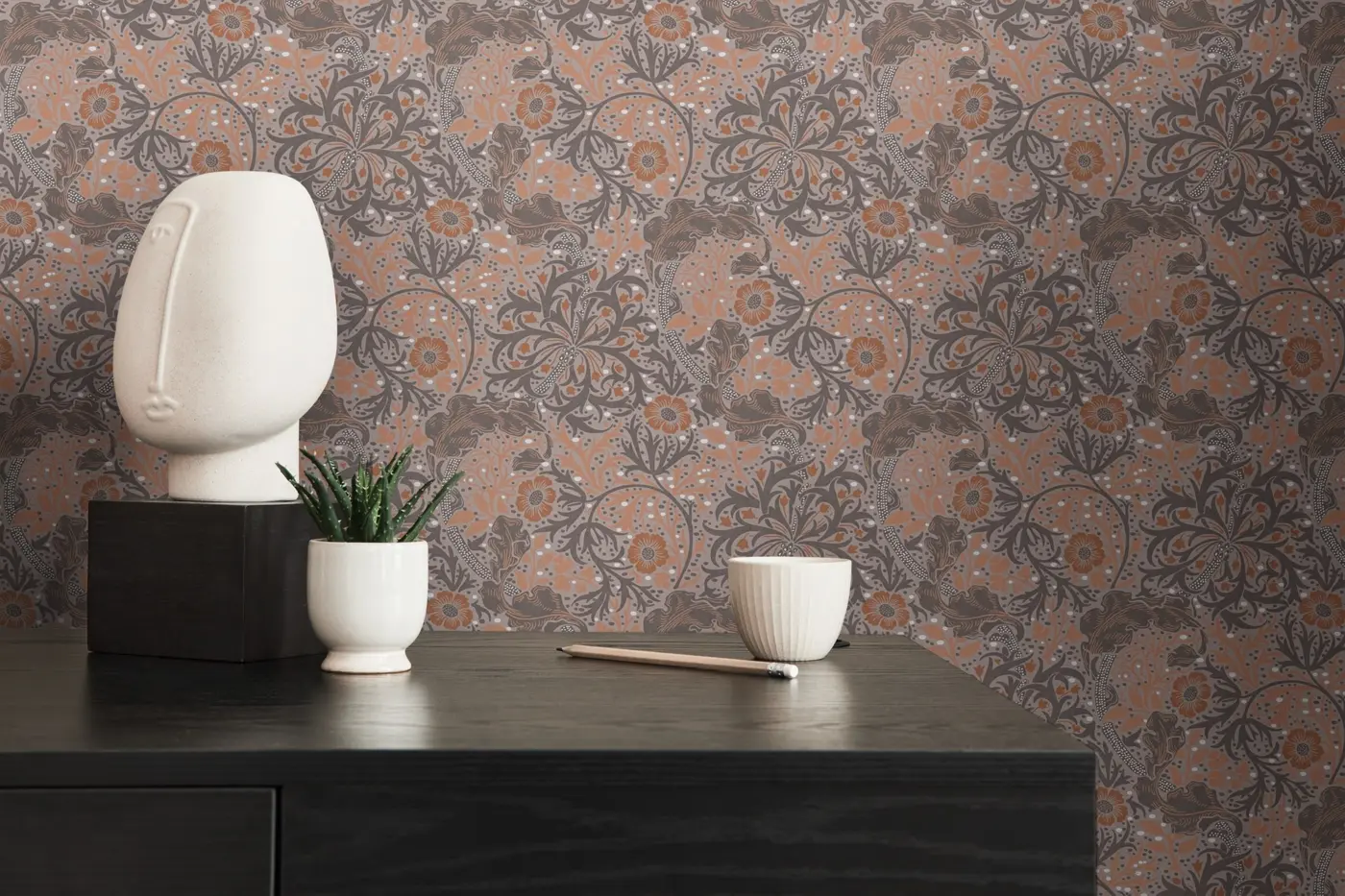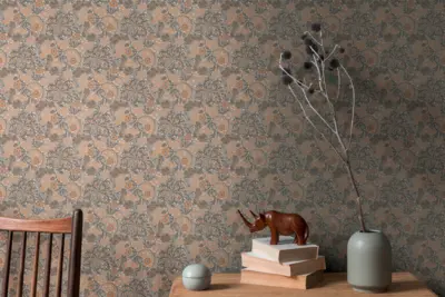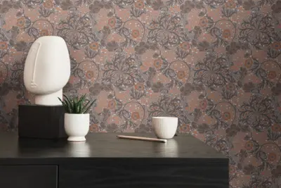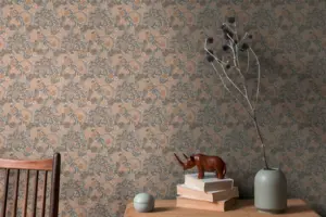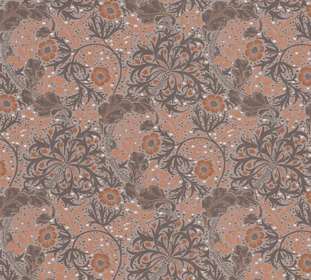Die Vliestapete Art of Eden 390593 von A.S. Création überzeugt mit einem modernen floralen Design in Orange, Greige, Grau und Weiß. Sie bringt natürliche Eleganz in jeden Raum und setzt stilvolle Akzente an Wand und Decke.