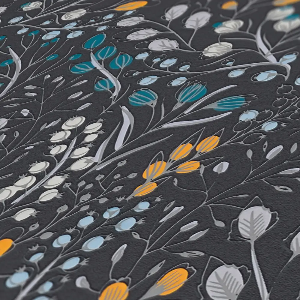 Vliestapete A.S. Création Attractive 2 – Florales Design in Schwarz, Gelb und Blau