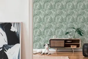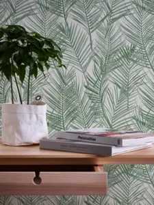 Die Vliestapete aus der Kollektion Attractive 2 von A.S. Création überzeugt mit ihrem stilvollen floralen Design in Grün und Weiß. Das dezente, matte Finish und die strukturierte Oberfläche schaffen eine moderne und zugleich behagliche Atmosphäre.