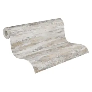 A.S. Création Vliestapete 390415 – Stilvolle Putzoptik in Creme, Grau und Gold