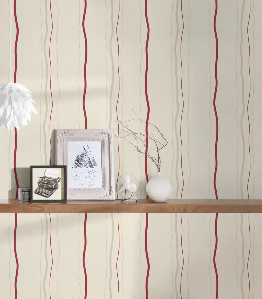 Die Vliestapete 958731 aus der Kollektion Best of Vlies, Casual Living von A.S. Création setzt mit ihrem modernen Streifen-Design stilvolle Akzente an Ihren Wänden. Die dezente Farbkombination aus Creme, Rot und Beige verleiht jedem Raum eine angenehme und zeitlose Atmosphäre und lässt sich vielseitig mit verschiedenen Einrichtungsstilen kombinieren.