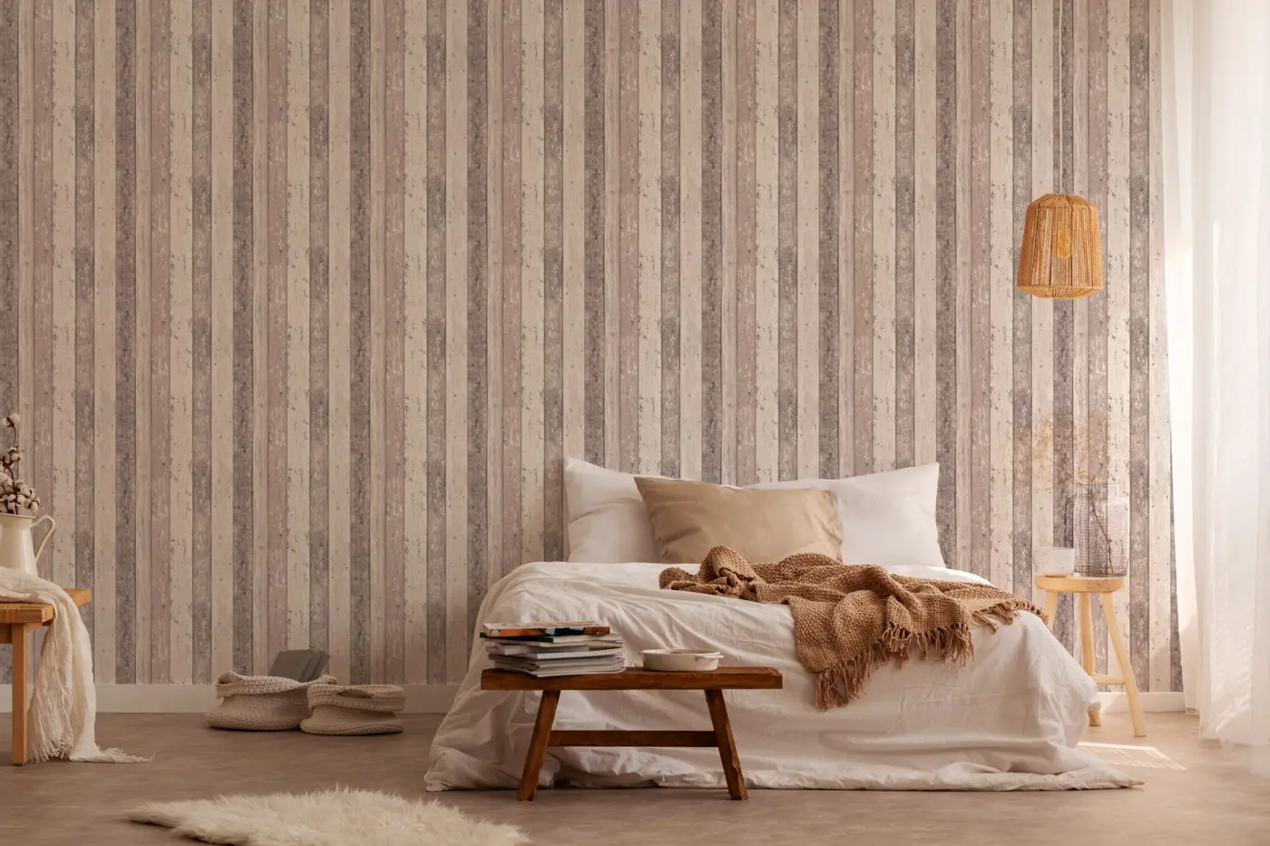 Dank ihres matt gehaltenen, leicht strukturierten Designs wirkt die Tapete authentisch und setzt stilvolle Akzente an Wand und Decke. Sie eignet sich besonders für das Wohnzimmer, Schlafzimmer, die Küche oder das Büro.