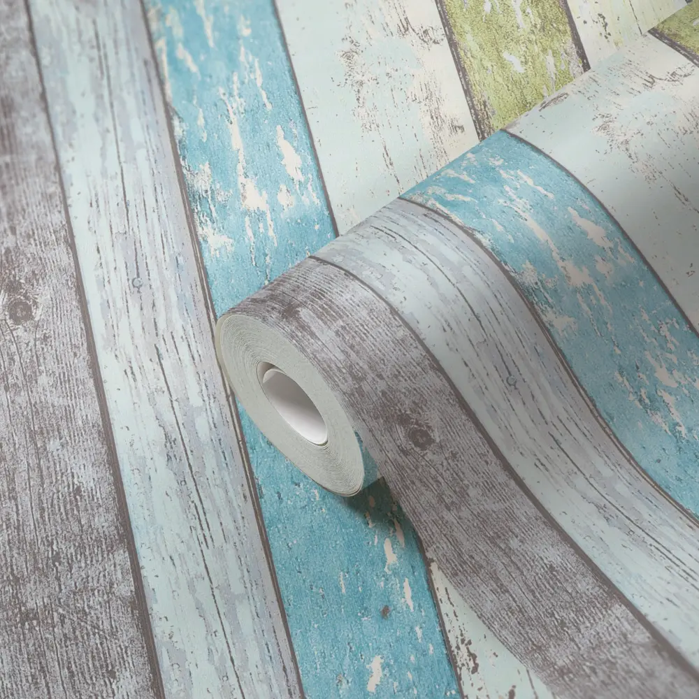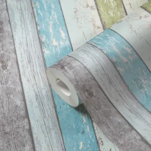 A.S. Création Vinyltapete 855077 – Holzoptik in Blau-Grün