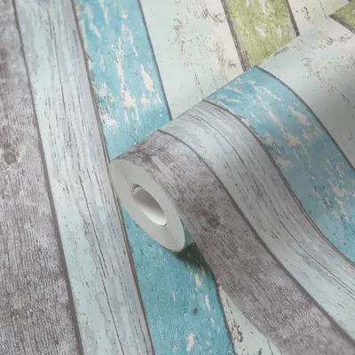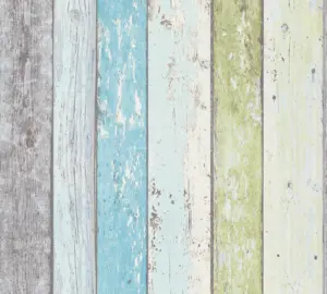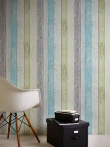 Die Vinyltapete 855077 aus der Kollektion "Best of Wood`n Stone 2nd Edition, Elements 2" von A.S. Création überzeugt mit einer modernen Holzoptik und einer attraktiven Farbkombination aus Blau, Grün und Weiß. Das matte Oberflächendesign mit leichter Struktur verleiht jedem Raum einen natürlichen und zugleich stilvollen Charakter.