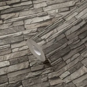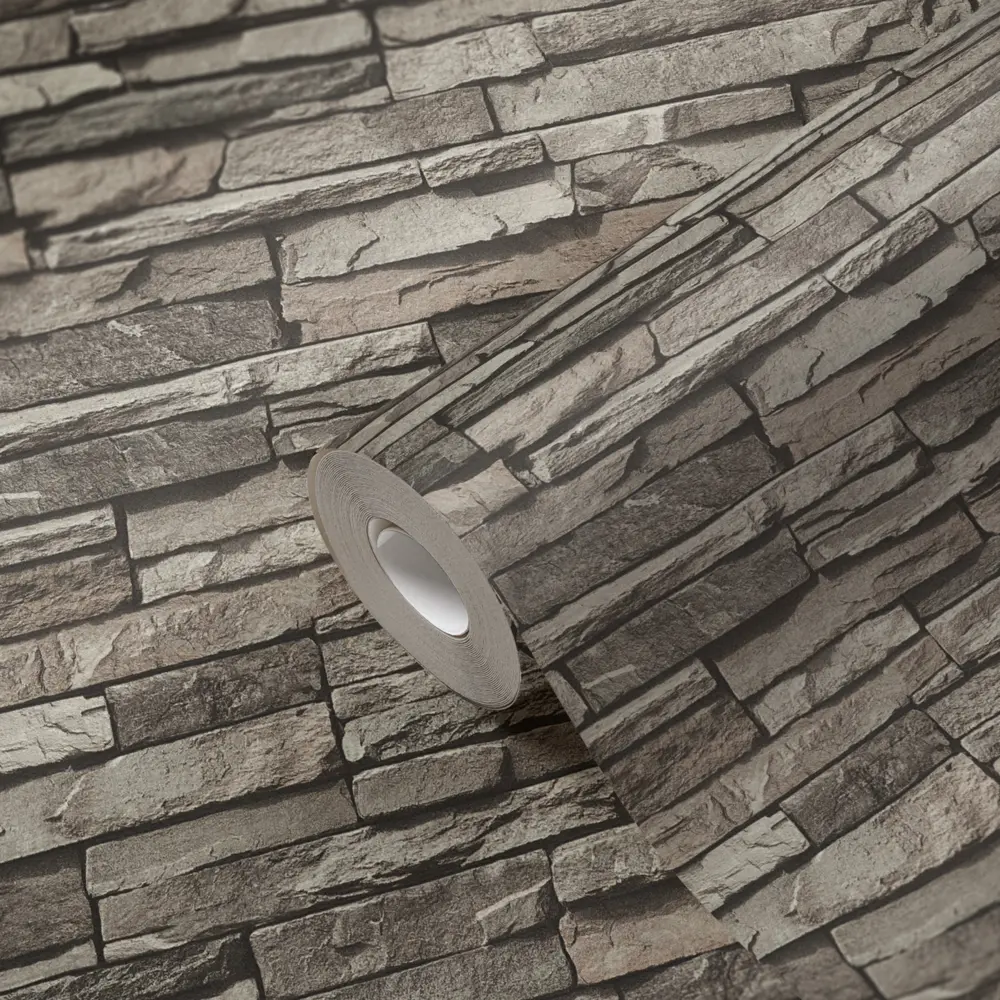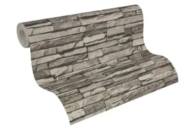 Setzen Sie stilvolle Akzente in Ihrem Zuhause – mit der Vliestapete 958331 von A.S. Création in Grautönen und moderner Steinoptik.