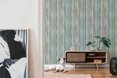 Die Vinyltapete aus der Best of Wood`n Stone 2nd Edition, Elements Kollektion von A.S. Création überzeugt mit einer modernen Holzoptik in den Farbtönen Blau, Grau und Creme. Das matte Oberflächenfinish und die dezente Struktur verleihen jeder Wand einen zeitgemäßen, naturinspirierten Charakter.