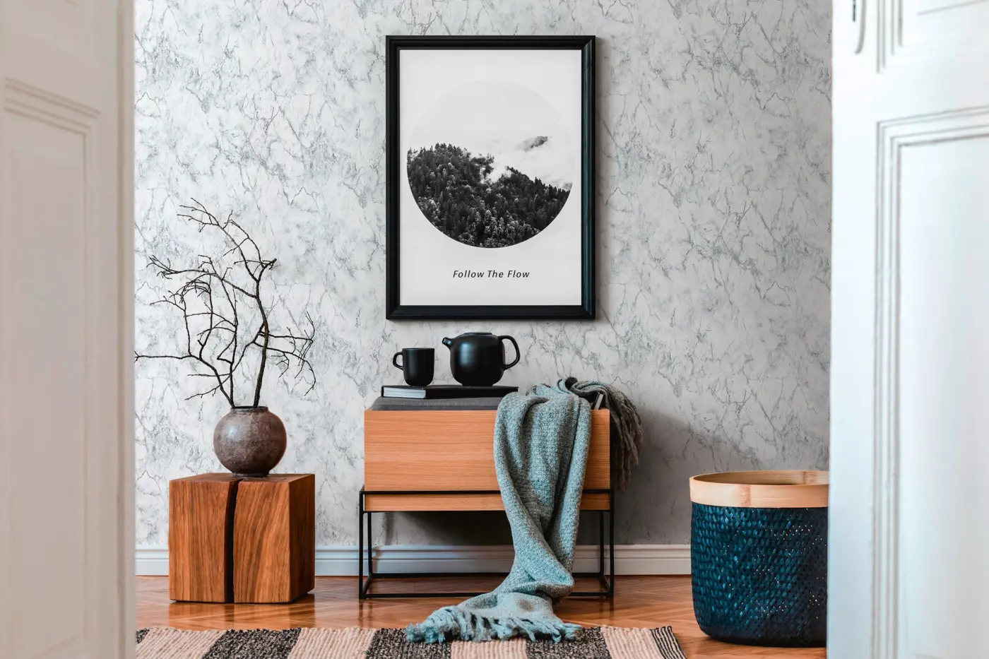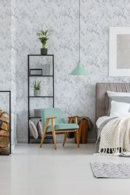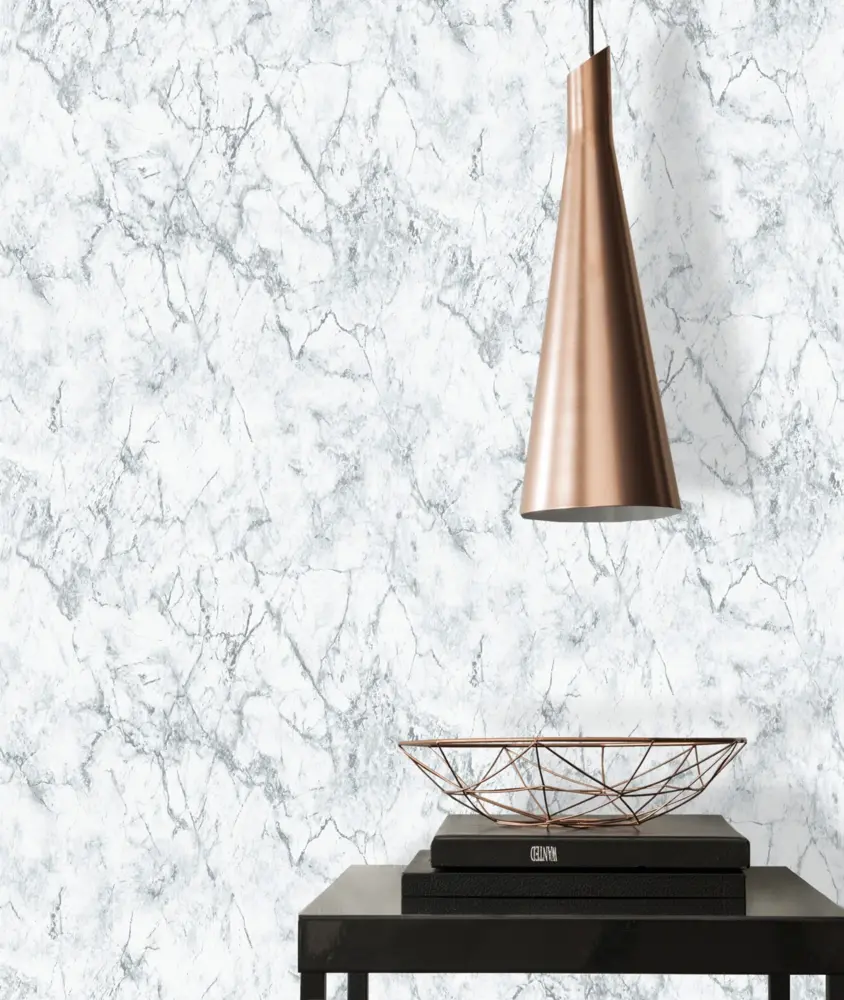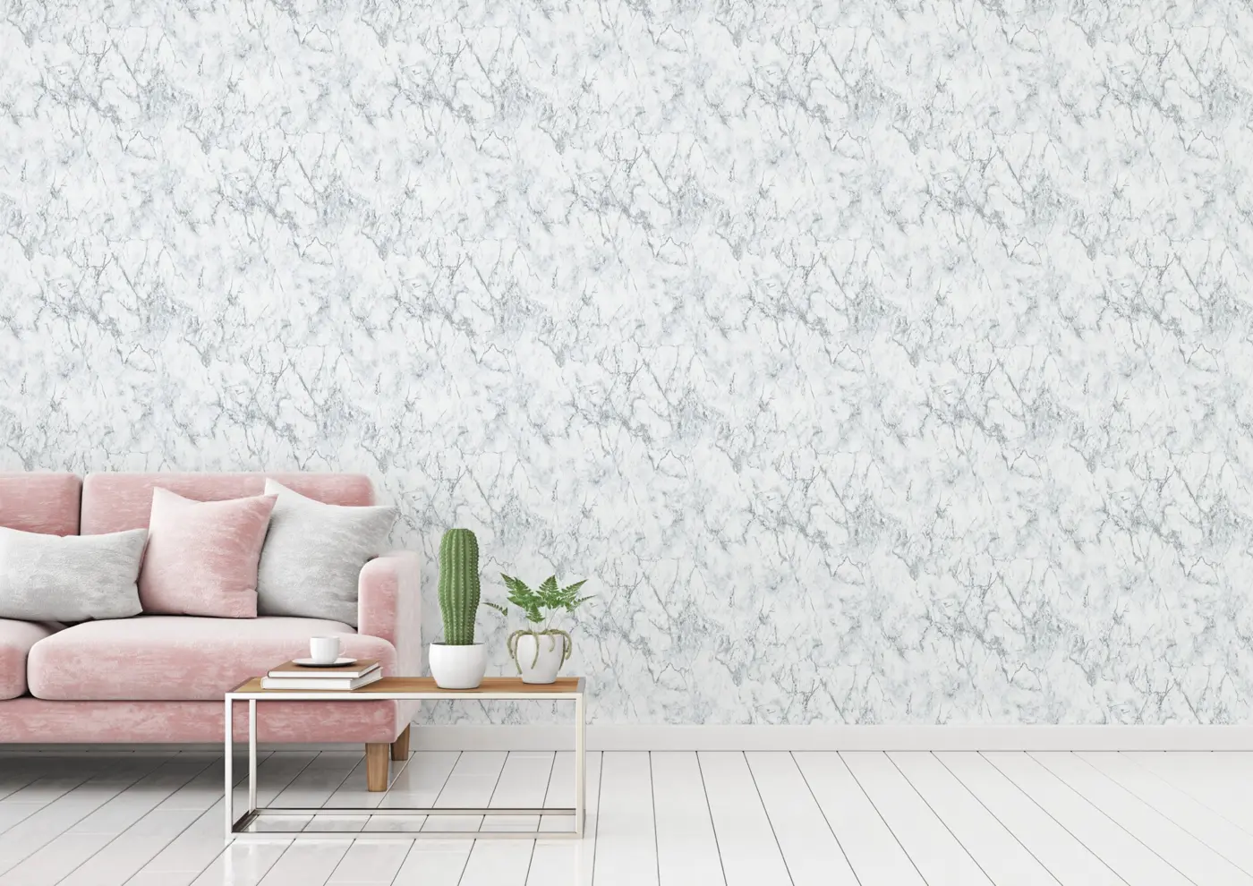 Ob im Wohnzimmer, in der Küche oder im Büro – diese Vinyltapete eignet sich optimal für unterschiedlichste Räume und verleiht ihnen ein modernes Ambiente. Die neutrale Farbgebung in Weiß und Grau lässt sich vielfältig kombinieren und setzt stilvolle Akzente an jeder Wand.