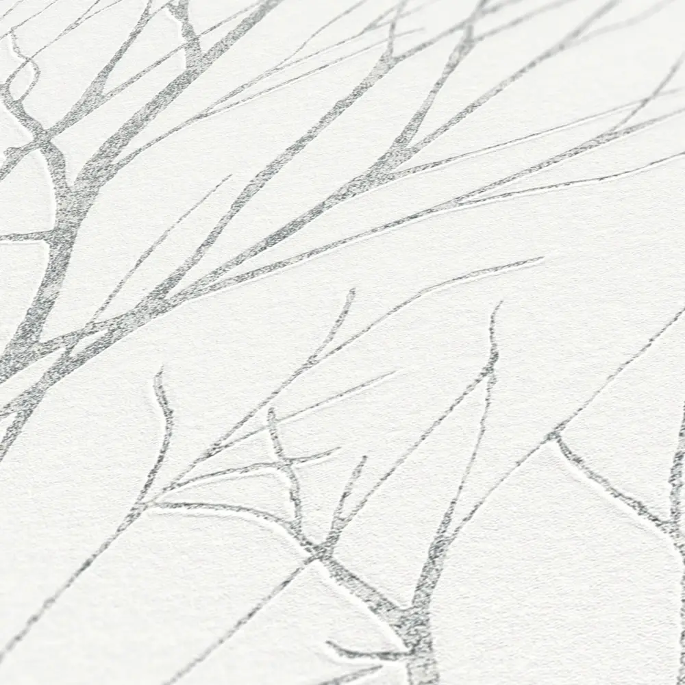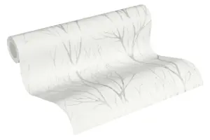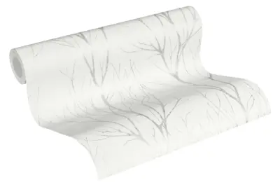 A.S. Création Blooming Vliestapete 372602 – Stilvolle Waldoptik in Weiß und Grau