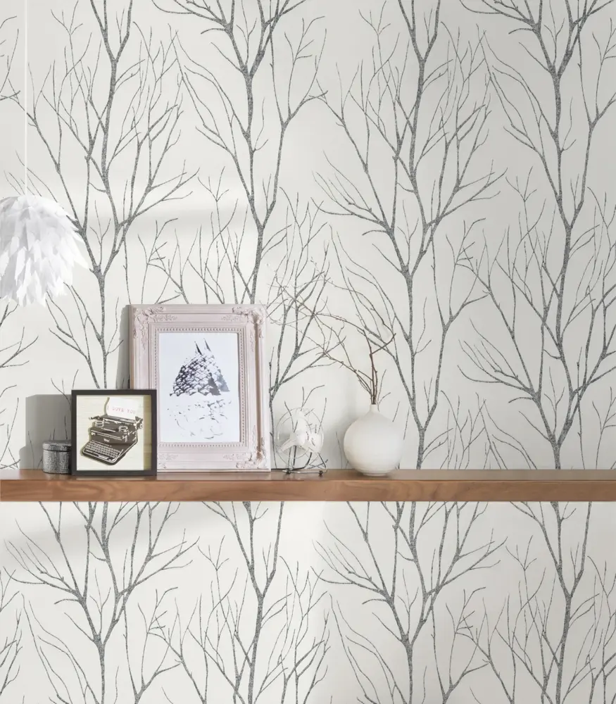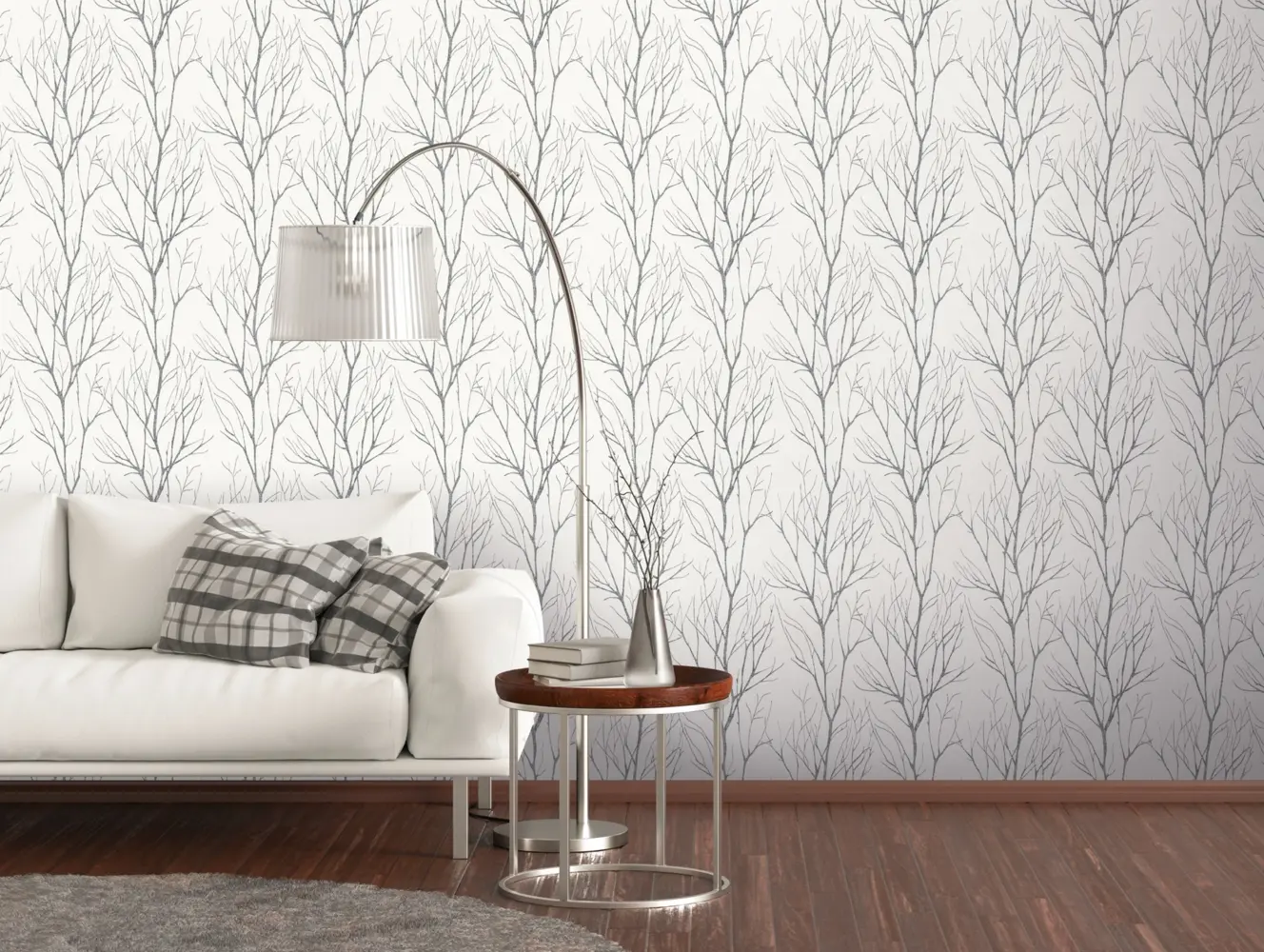 - Modernes Wald-Motiv in Weiß, Grau und Schwarz