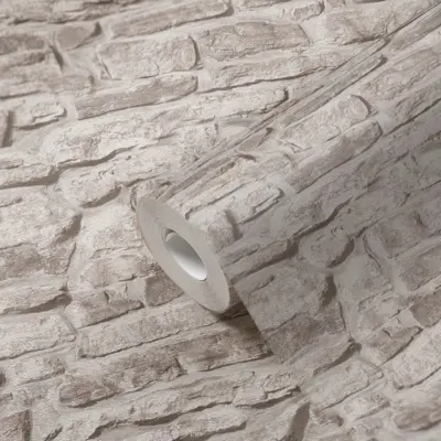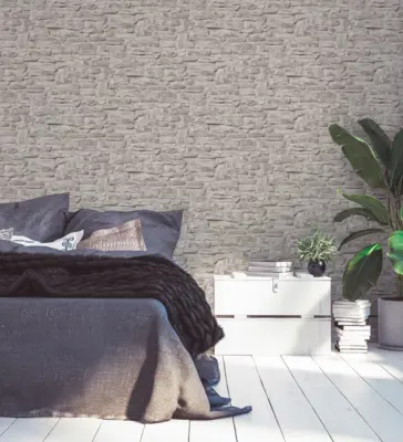 Die Vinyltapete aus der Kollektion "Bricks & Stones, Elements 2" von A.S. Création verleiht Ihren Räumen eine natürliche und moderne Ausstrahlung. Ihre authentische Steinoptik in den Farben Greige, Grau und Weiß sorgt für ein zeitloses, elegantes Ambiente und passt hervorragend zu vielfältigen Einrichtungsstilen.