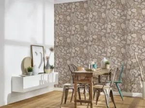 Die Vinyltapete von A.S. Création, Modell 389343 aus der Kollektion „Bricks & Stones, Elements 2“, vereint modernes Design in braun-grauer Steinoptik mit hochwertiger Verarbeitung. Dank des robusten Vliesträgers lässt sich die Tapete besonders leicht und sauber anbringen und bei Renovierungen wieder restlos trocken abziehen.
