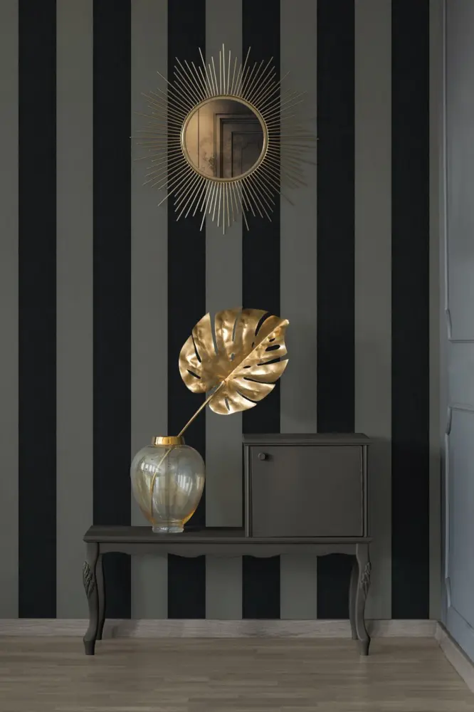 Die Tapete A.S. Création Castello 335815 überzeugt mit ihrem modernen Streifendesign in Grau, Silber und Schwarz. Sie sorgt für einen eleganten und zeitlosen Look an Ihren Wänden und verleiht jedem Raum ein stilvolles Ambiente. Die leicht glänzende, dezent strukturierte Oberfläche unterstreicht das hochwertige Erscheinungsbild.