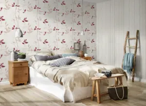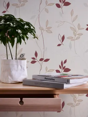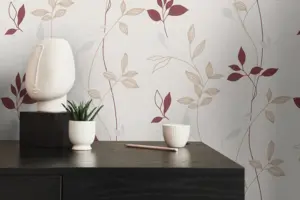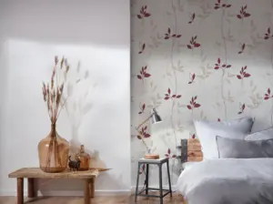 Die Tapete lässt sich restlos trocken abziehen und überzeugt durch ihren geraden Rapport von 64 cm. Das stabile Vlies-Trägermaterial erleichtert das Anbringen und sorgt für ein gleichmäßiges Ergebnis. Die Farbkombination aus Creme und Rot setzt stilvolle Akzente und schafft ein harmonisches Raumambiente.