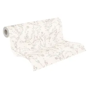 Die Vliestapete 395464 aus der Kollektion „Casual Living“ von A.S. Création überzeugt mit einem eleganten floralen Muster in Weiß und Grau. Das matte Finish und die glatte Oberfläche verleihen jedem Raum eine moderne, harmonische Atmosphäre. Dank des hochwertigen Materials aus Vlies und der zusätzlichen Vinylbeschichtung ist die Tapete sowohl hoch waschbeständig als auch besonders lichtbeständig.
