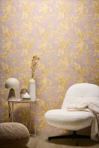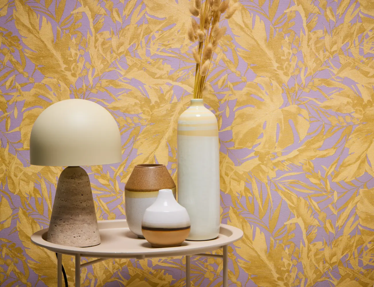 Die Vliestapete 790633 aus der CosmoLiving Kollektion von A.S. Création verbindet eine ausdrucksstarke Botanic-Optik mit einem eleganten Farbspiel aus Violett und Gold. Das matt gehaltene Vinyl-Finish wirkt modern und stilvoll, während die leicht strukturierte Oberfläche dem Motiv zusätzliche Tiefe verleiht – ideal für ausdrucksstarke Akzentwände oder harmonische Raumkonzepte mit Designanspruch.
