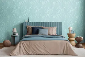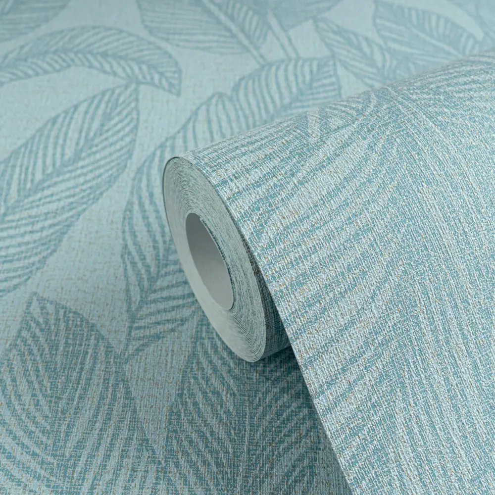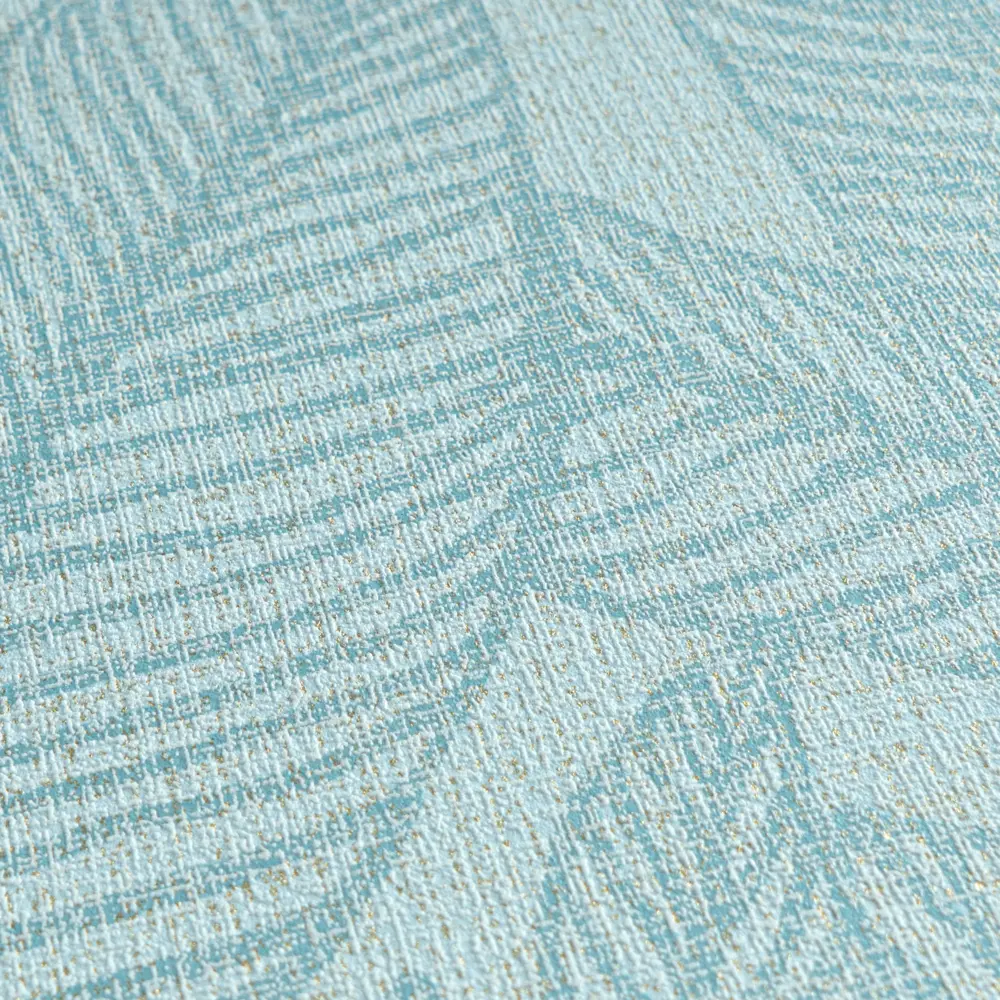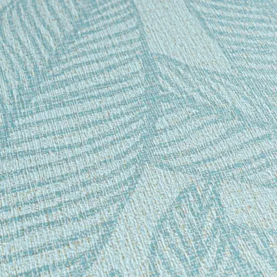 Das Motiv im Stil „Palmenblätter, Dschungel, Botanic“ wirkt zugleich trendbewusst und wohnlich. Die Oberfläche ist matt & glänzend ausgearbeitet und leicht strukturiert, wodurch Tiefe entsteht und das Muster besonders hochwertig erscheint.