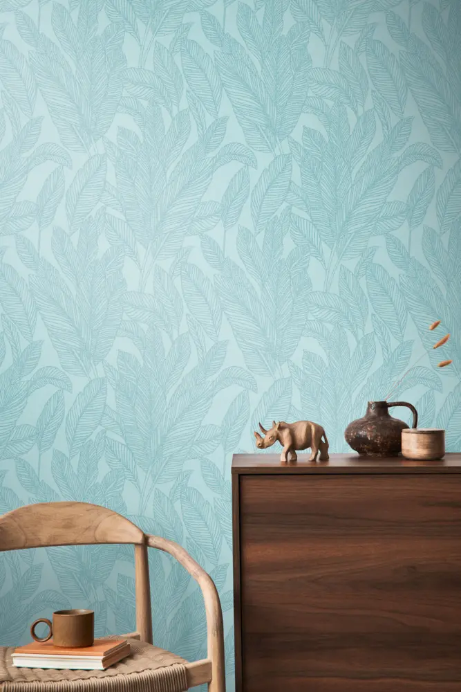 Die A.S. Création CosmoLiving Vliestapete 790643 aus der Kollektion CosmoLiving by Livingwalls bringt mit Palmenblättern und Dschungel-Charakter eine moderne Botanic-Atmosphäre an die Wand. Die Kombination aus blauem Grundton und metallischer Optik sorgt für ein elegantes Wechselspiel aus matt und glänzend, das je nach Lichteinfall lebendig wirkt.