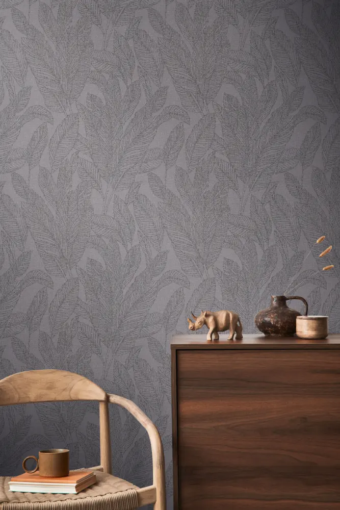 Mit ihrer Dschungel- und Palmenblatt-Optik passt die Vliestapete besonders gut zu modernen, skandinavischen oder urbanen Interieurs. Grau als Grundton wirkt zeitlos und lässt sich vielseitig mit Holz, Schwarz, Weiß oder warmen Naturfarben kombinieren, während die metallische Note gezielt Highlights setzt.
