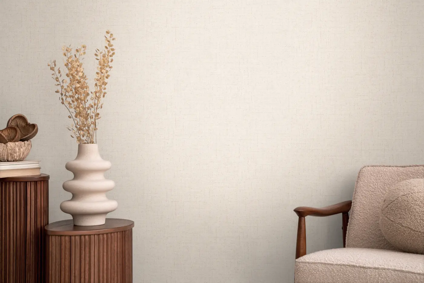 Die strukturierte Uni-Optik sorgt für Tiefe, ohne sich in den Vordergrund zu drängen. So entsteht eine ausgewogene Wandwirkung, die Möbel, Kunst und Textilien stilvoll ergänzt und Räumen eine klare, hochwertige Basis verleiht.
