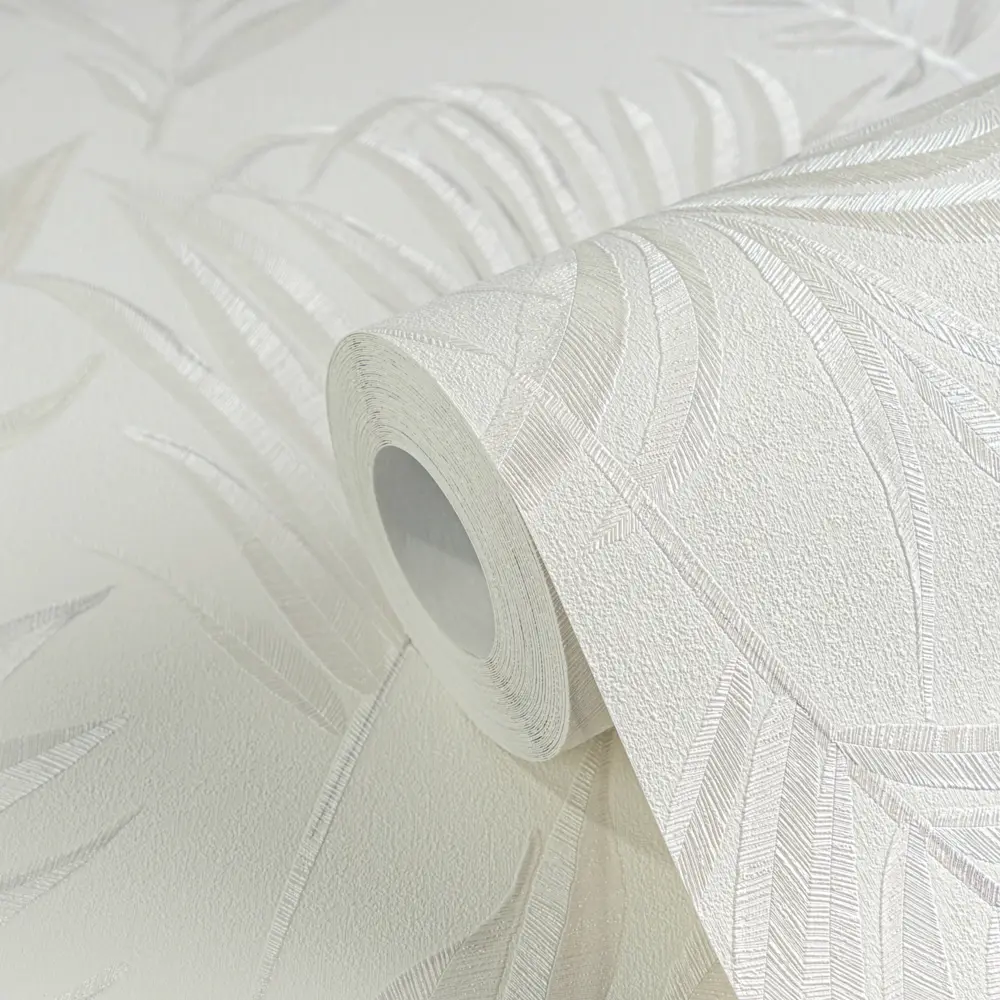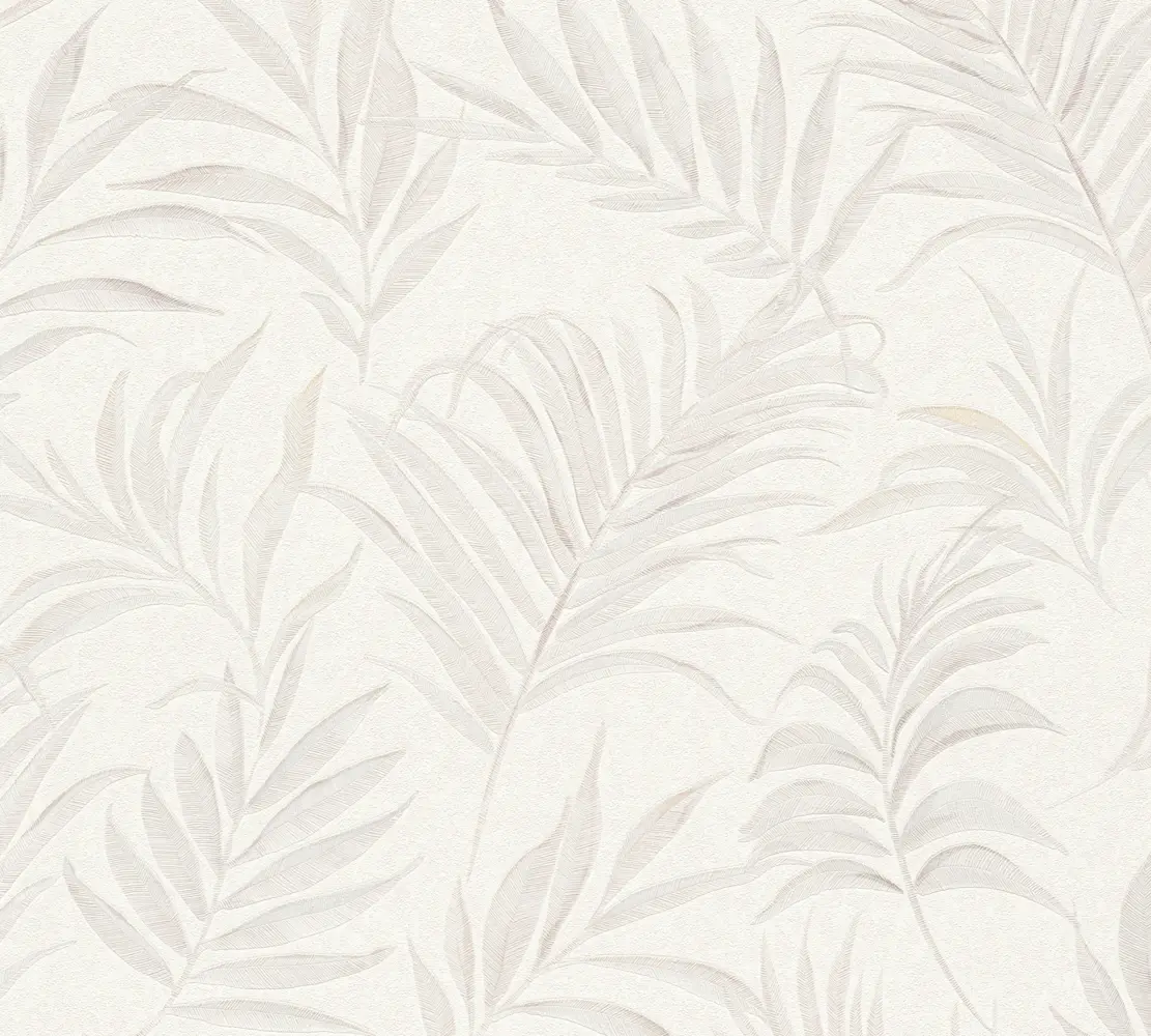 Mit der A.S. Création CosmoLiving Vliestapete 791081 bringen Sie eine moderne, ruhige Dschungel-Anmutung an die Wand: Palmenblätter und florale Elemente wirken edel und zugleich zurückhaltend in weißer Farboptik. Die Kombination aus matter und glänzender Oberfläche setzt das Muster je nach Lichteinfall dezent in Szene und verleiht Räumen mehr Tiefe.