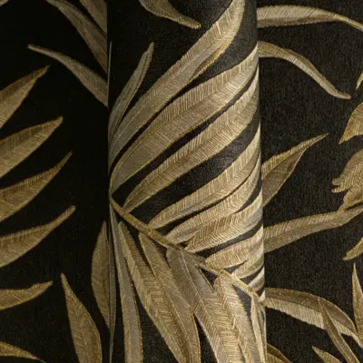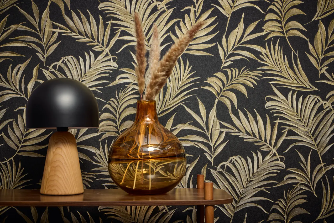 Mit ihrem Stil aus Dschungel-, Palmenblatt- und Floral-Elementen passt die Tapete hervorragend zu modernen Interiors, Art-Déco-inspirierten Konzepten oder als edle Akzentwand im Wohn- und Schlafbereich. Schwarz und Gold wirken besonders stark in Kombination mit warmen Materialien, klaren Linien und gezielt gesetzten Lichtquellen.