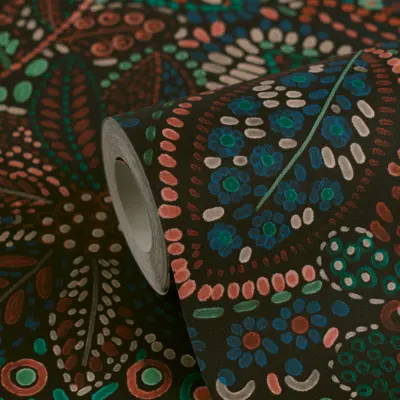 - Florale Tapete, Ethno, Blumen, Blätter, Blätterranken