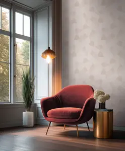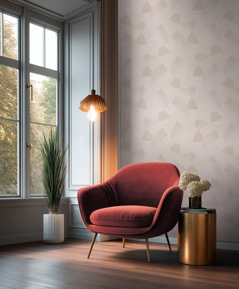 Die grafische, geometrische Gestaltung passt hervorragend zu modernen Wohnkonzepten und klaren Materialien. Der dezente Glanz und die leichte Struktur bringen zusätzliche Tiefe an die Wand und unterstützen ein ordentliches, ausgewogenes Raumgefühl.