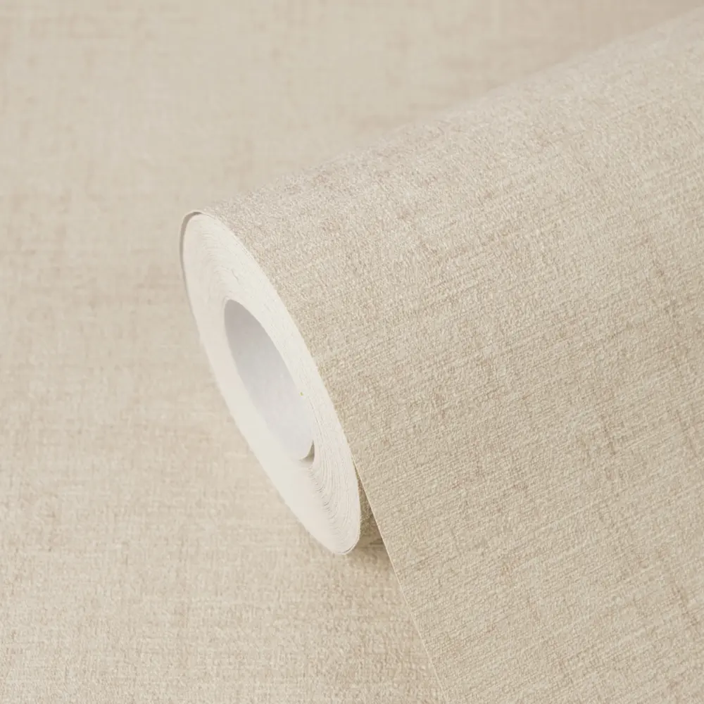 Die Uni-Tapete in Textiloptik ist eine flexible Basis für unterschiedliche Einrichtungsstile. Beige und Rosé lassen sich besonders gut mit Naturtönen, hellen Hölzern und klaren, modernen Materialien kombinieren und schaffen eine freundliche, ausgeglichene Raumatmosphäre.