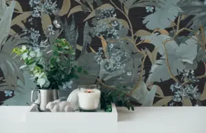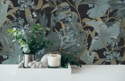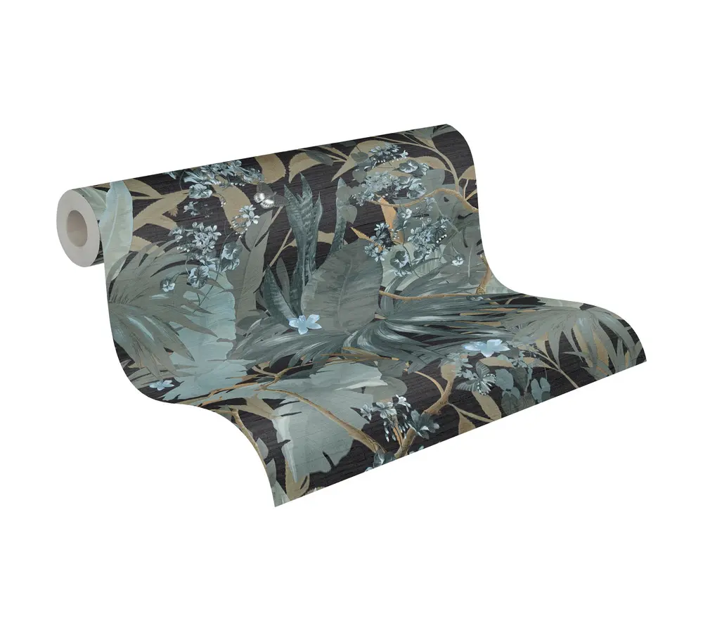 Livingwalls Vinyltapete 385222: Stilvolles Dschungelambiente in Türkis und Schwarz
