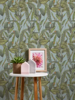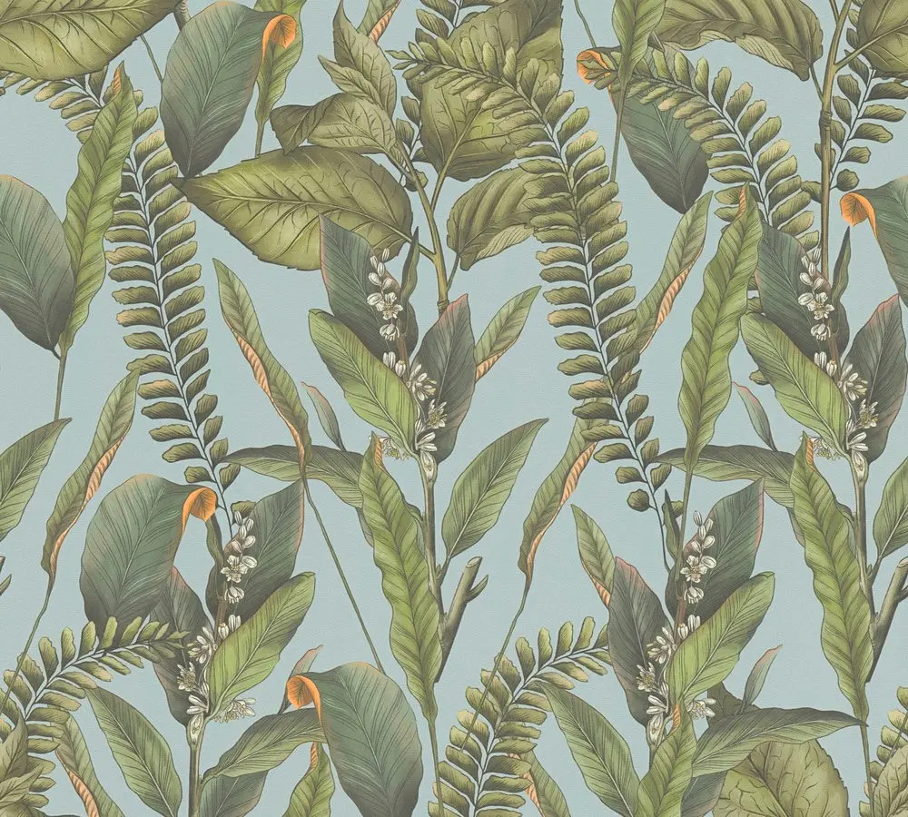 Die Vinyltapete Drawn Into Nature von A.S. Création beeindruckt mit einem floralen Design in Blau, Grün und Orange. Die dezente Matte Optik und leicht strukturierte Oberfläche schaffen eine harmonische und natürliche Atmosphäre in jedem Raum. Mit einer Breite von 53 cm und einer Länge von 10,05 m eignet sich diese Wandtapete für unterschiedliche Einsatzbereiche wie Wohnzimmer, Schlafzimmer, Küche, Badezimmer oder Büro.