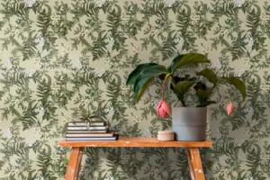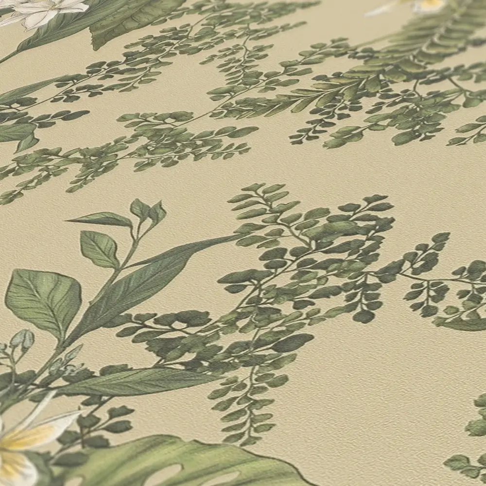 Die A.S. Création Vinyltapete 394241 aus der Kollektion Drawn Into Nature bringt die Schönheit der Natur direkt an Ihre Wände. Das stilvolle florale Motiv in kräftigem Dunkelgrün, Akzenten in Weiß und Gelb schafft eine erfrischende, naturnahe Atmosphäre in Ihrem Wohn-, Schlaf- oder Arbeitszimmer.