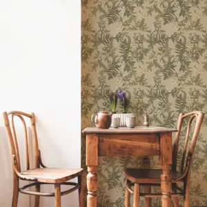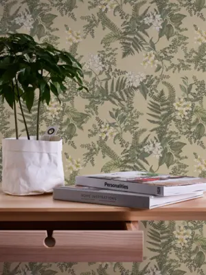 Vinyltapete Drawn Into Nature – Florales Design in Dunkelgrün