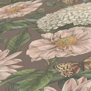 Die A.S. Création Vinyltapete aus der Kollektion Drawn Into Nature vereint florale Eleganz mit moderner Wohnlichkeit. Das Design kombiniert bordeauxrote und rosafarbene Grundtöne mit grünen und gelben Akzenten und sorgt für ein harmonisches sowie stilvolles Ambiente an Ihren Wänden.