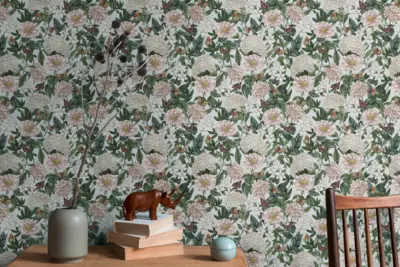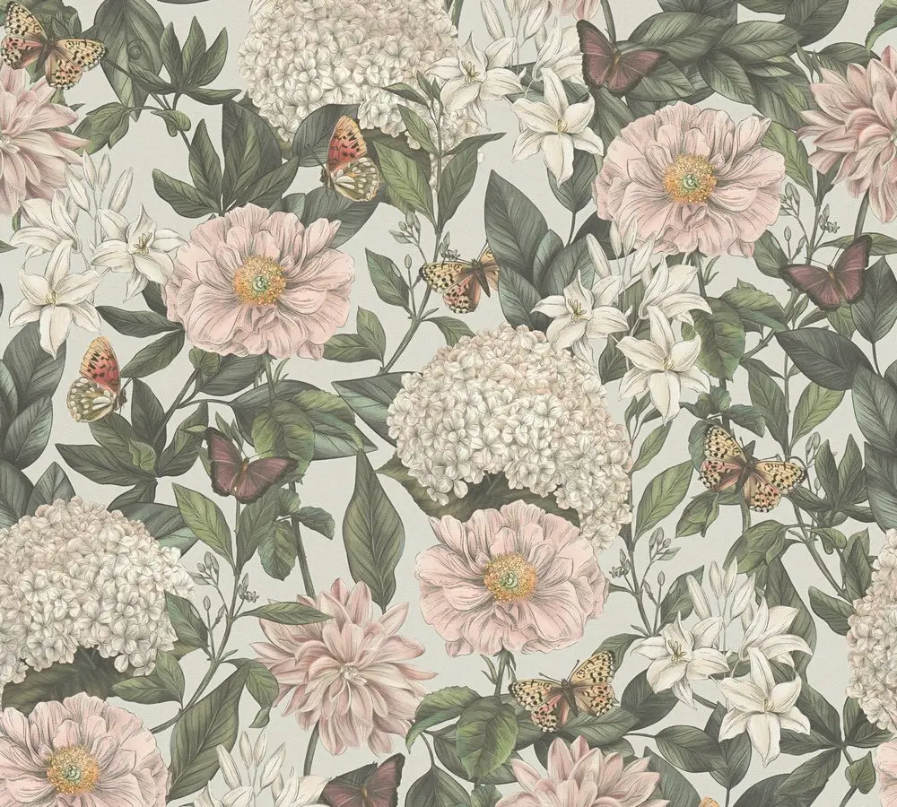 Die Vinyltapete „Drawn Into Nature" von A.S. Création kombiniert ein dezentes Blumenmuster mit modernen Farbtönen in Hellgrau, Weiß, Grün und Rot. Dank ihrer leichten Struktur und der matten Oberfläche schafft sie eine natürliche Raumatmosphäre und überzeugt durch ihr stilvolles, florales Design.