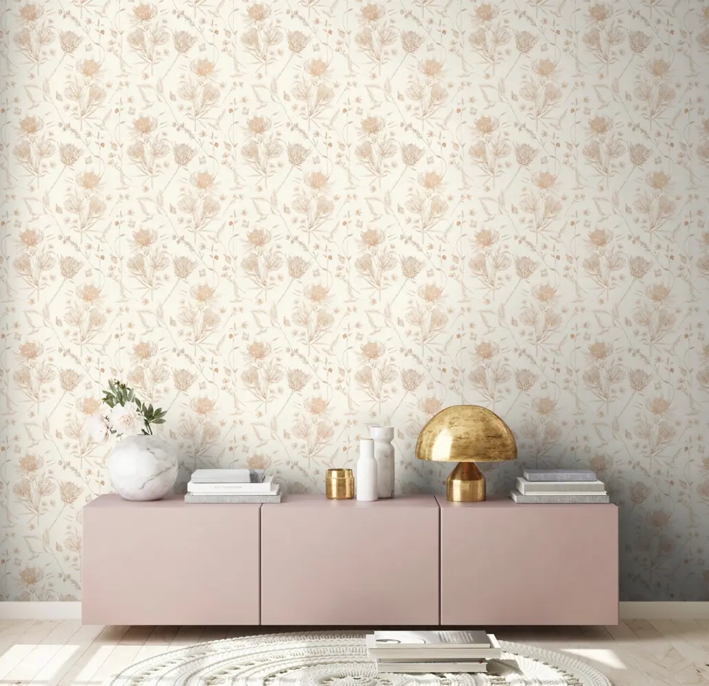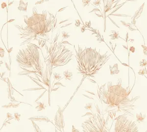 Die hochwertige Vinyltapete aus der Kollektion "Drawn Into Nature" von A.S. Création bringt natürliche Eleganz an Ihre Wand. Mit einem stilvollen floralen Design in sanften Tönen von Weiß, Braun, Beige und Orange zaubert sie eine harmonische, wohnliche Atmosphäre in jeden Raum.