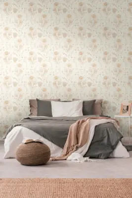 Dank der matten, leicht strukturierten Oberfläche wirkt das Blütenmuster besonders lebendig und zugleich dezent. Die Tapete überzeugt durch ihre gute Lichtbeständigkeit und ist scheuerbeständig sowie restlos trocken abziehbar, was die Pflege und Entfernung besonders einfach macht.