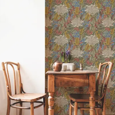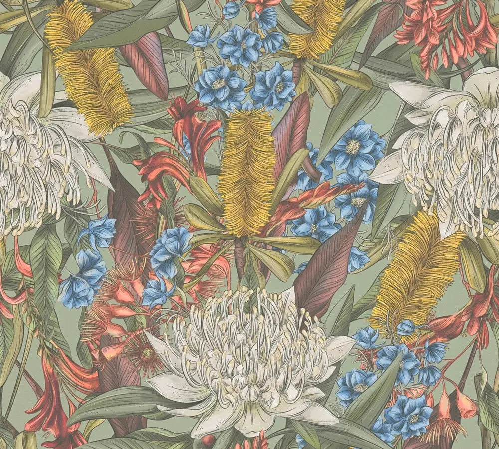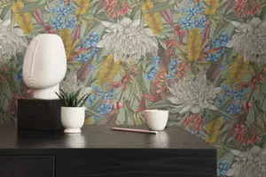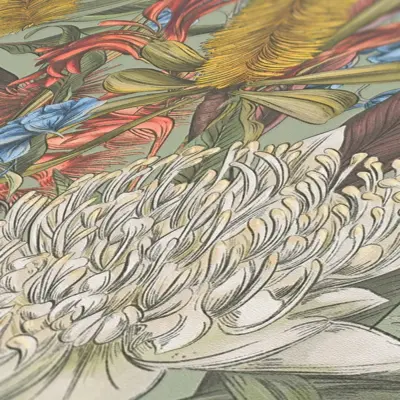 Die A.S. Création Vinyltapete aus der Kollektion "Drawn Into Nature" vereint modernes Design mit einer floralen Optik in einem farbenfrohen Ensemble aus Grün, Gelb, Blau und Rot. Mit ihrem matten Finish und einer leicht strukturierten Oberfläche bringt sie stilvolle Natürlichkeit in jedes Wohnambiente. Die Tapete eignet sich dank ihres widerstandsfähigen Vliesträgers hervorragend für zahlreiche Einsatzorte wie Wohnzimmer, Schlafzimmer, Büro, Küche oder Badezimmer.