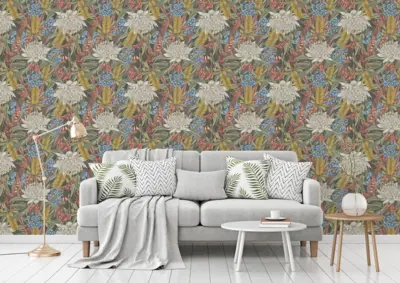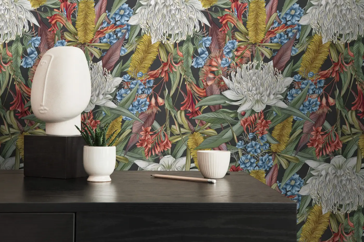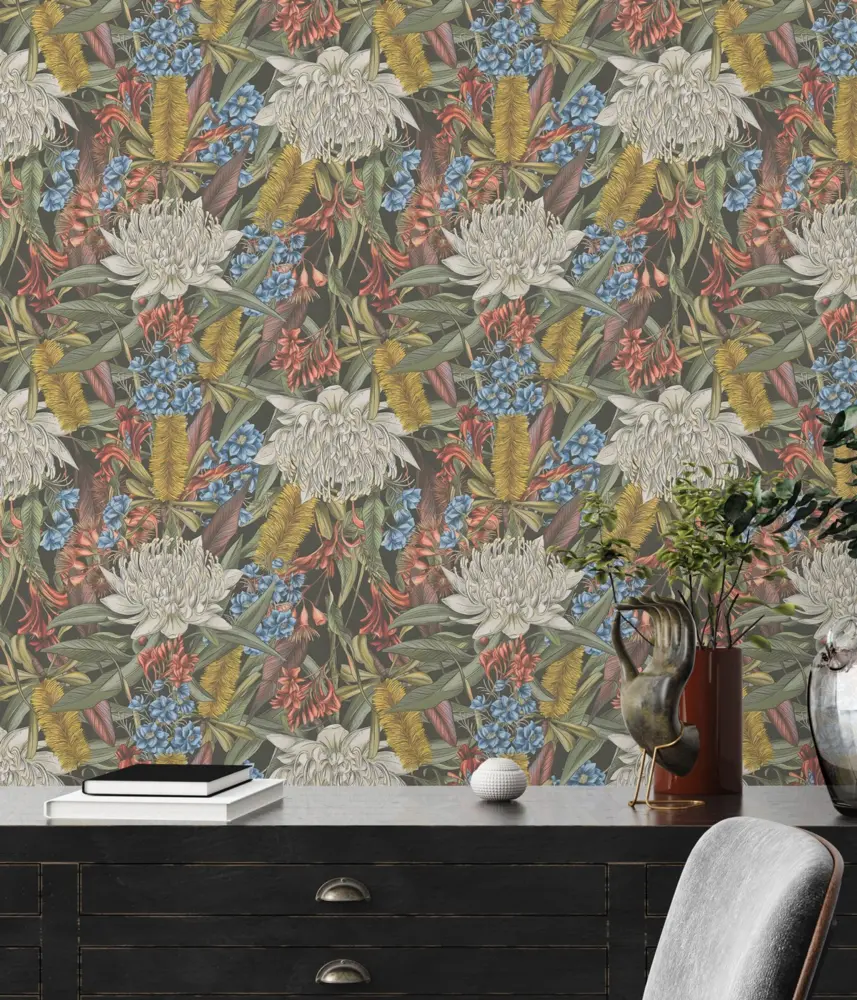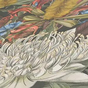 Verleihen Sie Ihren Wohnräumen mit der Livingwalls Vinyltapete 394282 einen Hauch natürlicher Eleganz. Das detailreiche, florale Design in harmonischen Farben wie Schwarz, Grün, Blau und Rot verwandelt jede Wand zu einem besonderen Blickfang. Die Tapete überzeugt mit einer matten, leicht strukturierten Oberfläche und bringt die Motive eindrucksvoll zur Geltung.