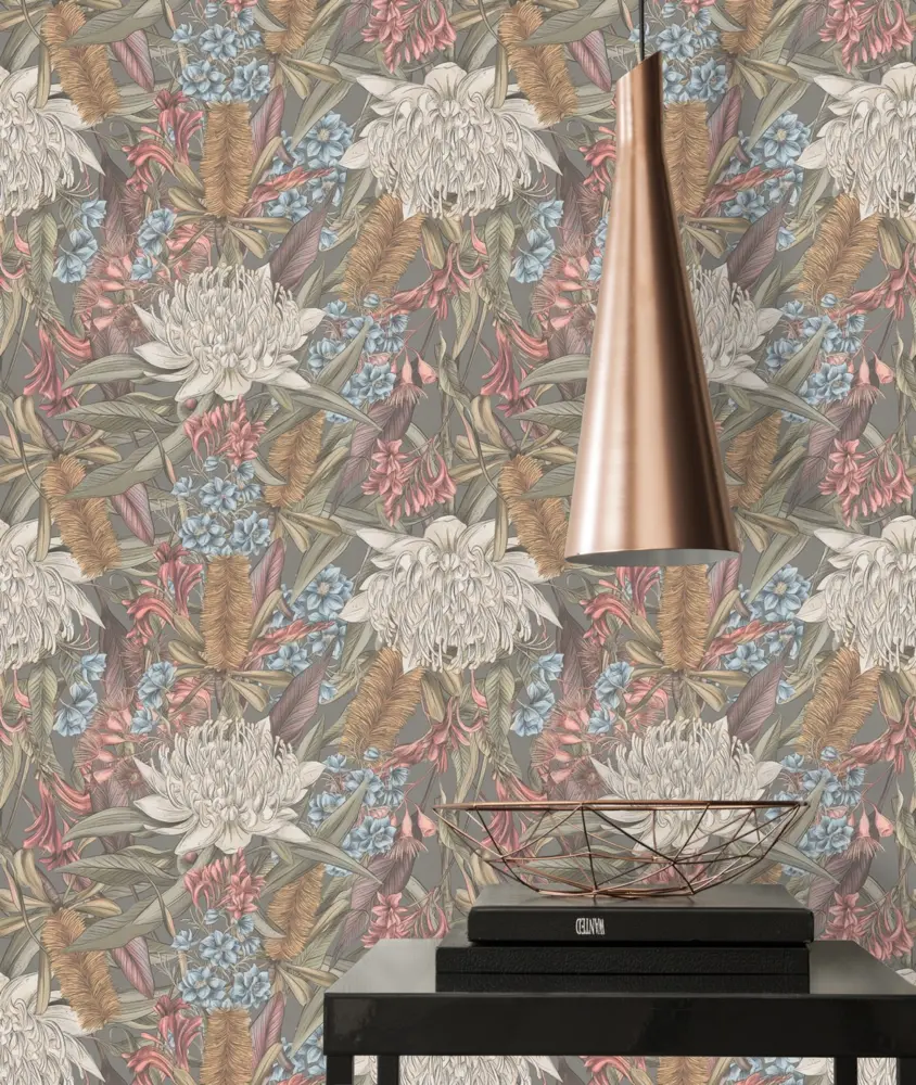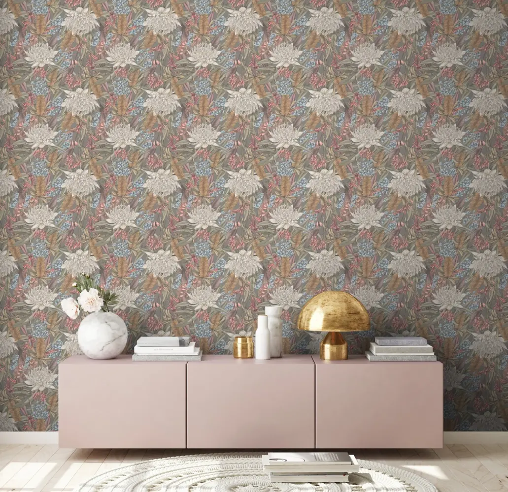 Livingwalls Vinyltapete 394283 – Stilvolle Blumentapete in Grau und Rosa