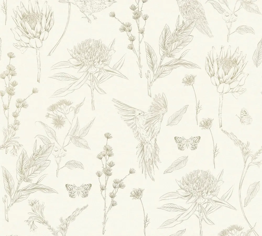 Setzen Sie auf eine stilvolle Wandgestaltung im floralen Look mit hochwertigen Details und einer natürlichen Anmutung – Die Livingwalls Vinyltapete 394293 aus der Kollektion „Drawn Into Nature“ bereichert Ihre Räume spürbar.