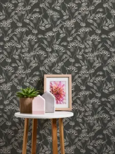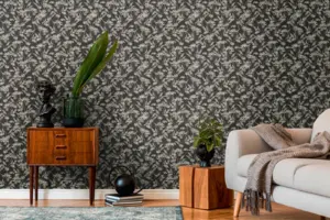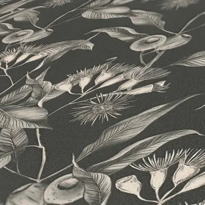 Die Vinyltapete aus der Kollektion Drawn Into Nature von A.S. Création verleiht jedem Raum eine elegante und moderne Note. Das florale, in Schwarz, Weiß und Grau gehaltene Blattmuster schafft eine beeindruckende Verbindung von Natürlichkeit und zeitgemäßem Stil. Besonders die matte Oberfläche und die leicht strukturierte Haptik sorgen für ein hochwertiges Erscheinungsbild und angenehmes Raumgefühl.