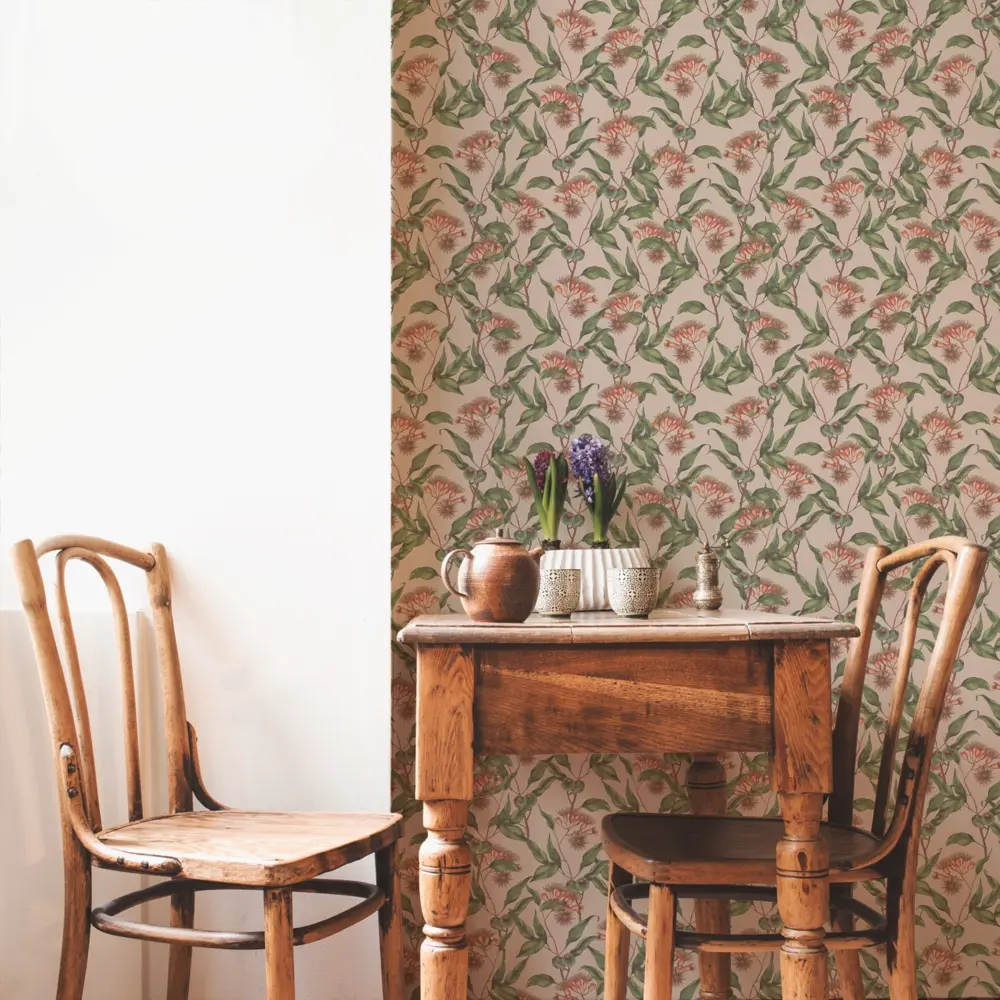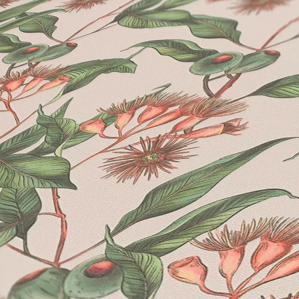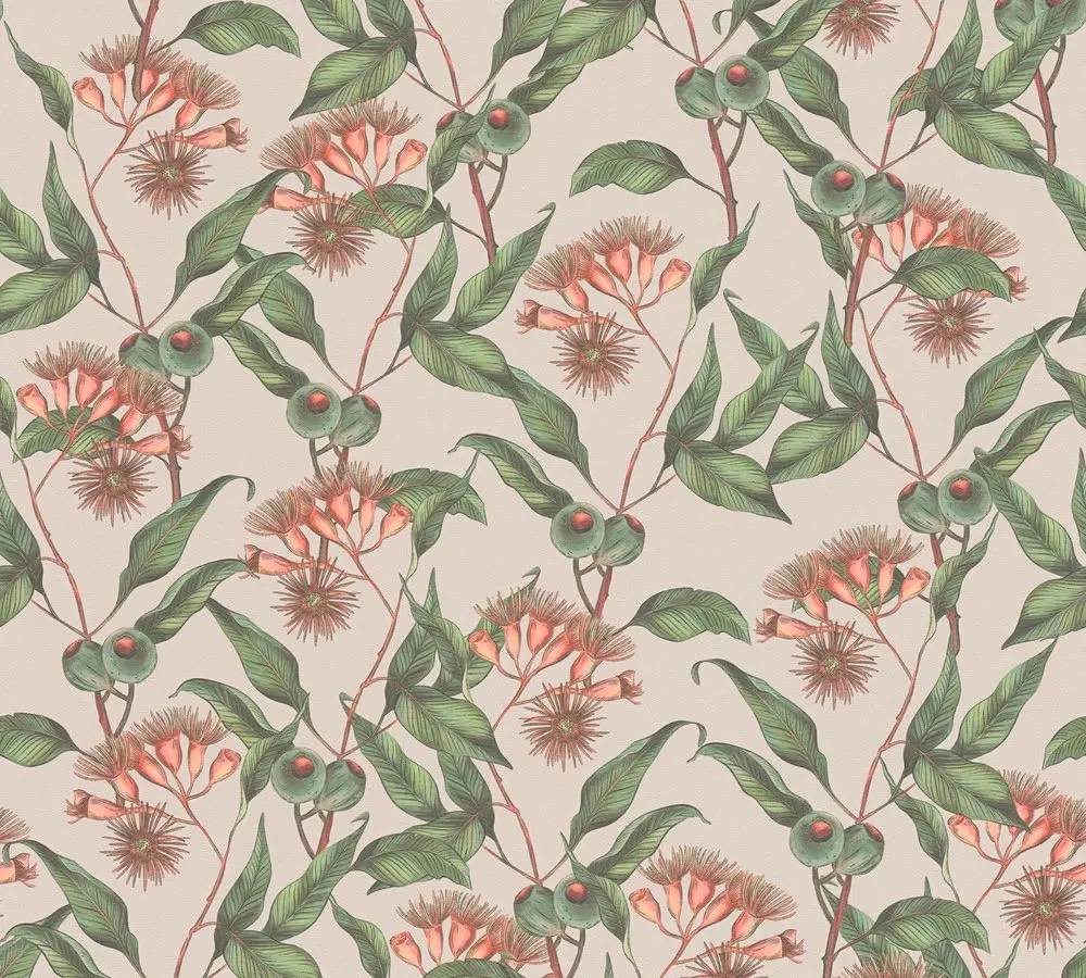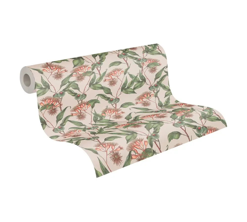 Die Livingwalls Vinyltapete 394303 von A.S. Création aus der Kollektion „Drawn Into Nature“ bringt mit ihrem floralen Blattdesign in Beige, Grün und roten Akzenten eine natürliche und beruhigende Atmosphäre in jeden Raum. Die matte Oberfläche und die leicht strukturierte Haptik verleihen der Tapete eine moderne und hochwertige Optik.