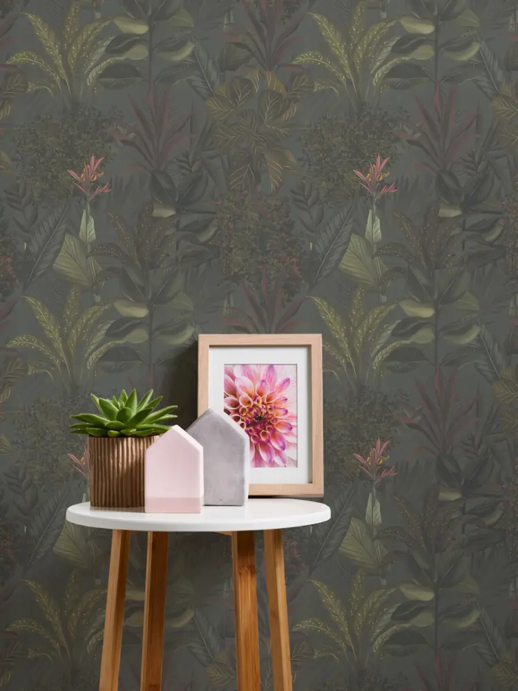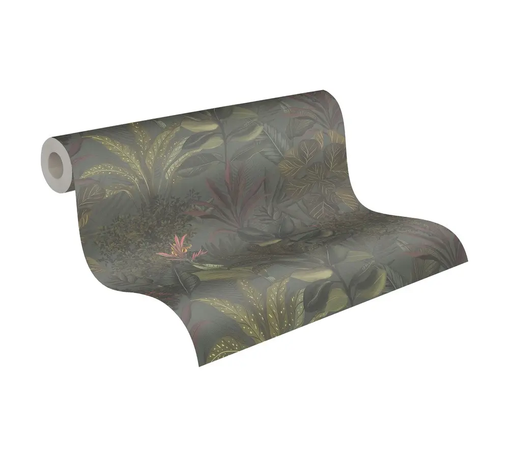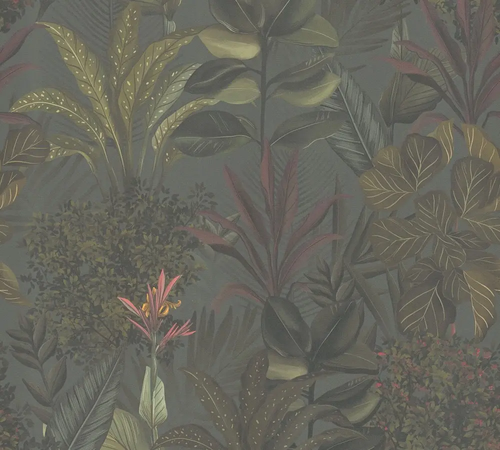 Die A.S. Création Vinyltapete aus der Drawn Into Nature Kollektion kombiniert ansprechende dunkelgrüne und bordeauxrote Dschungel-Designs. Dieses Muster bringt die Faszination der Natur direkt in Ihre Wohn- oder Arbeitsräume.