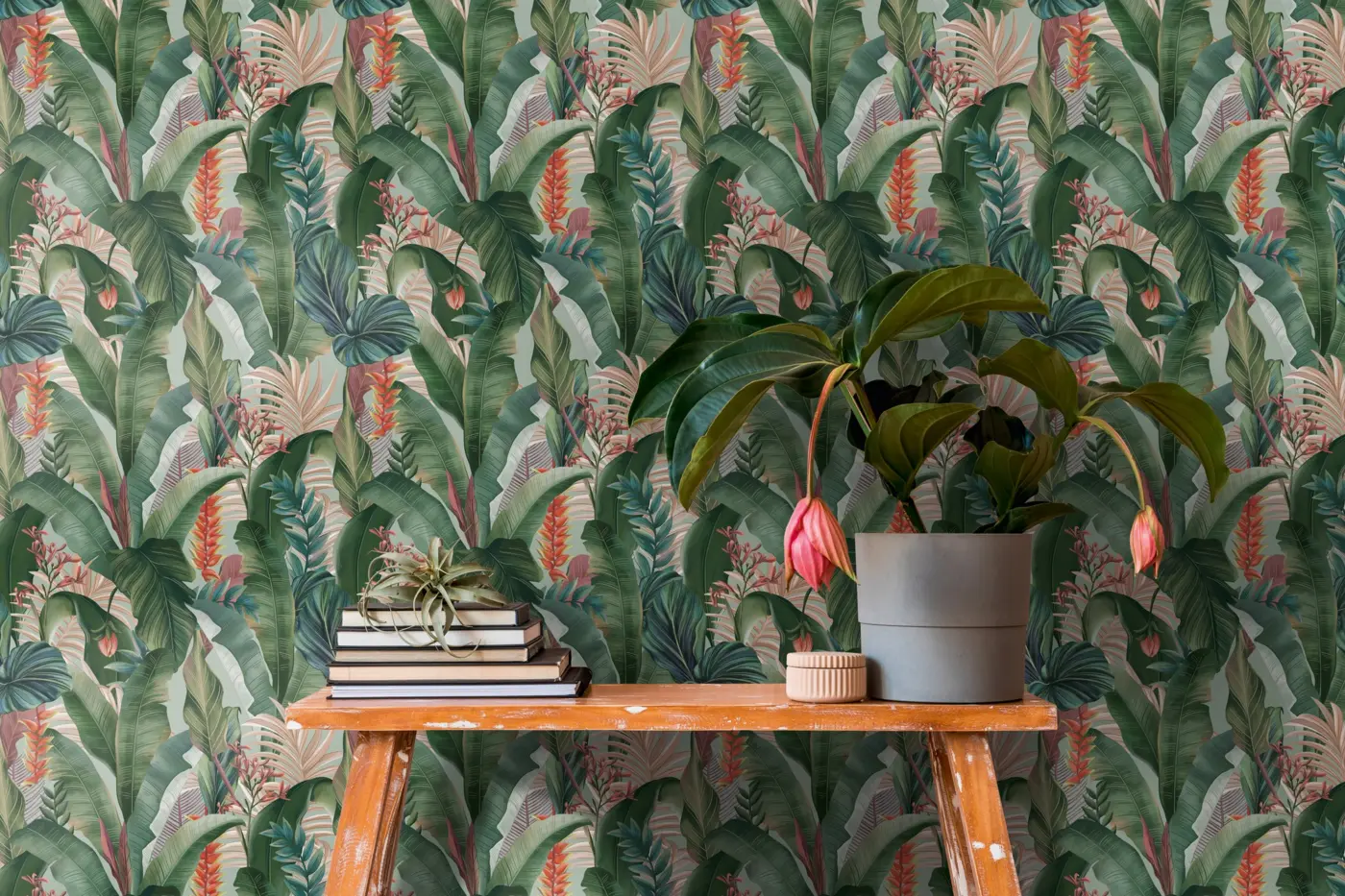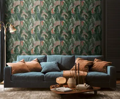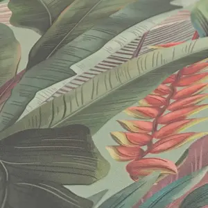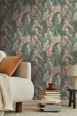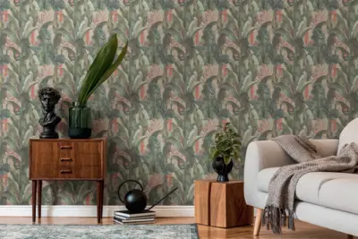 Mit der A.S. Création Vinyltapete aus der Kollektion Drawn Into Nature schaffen Sie eine harmonische Verbindung von modernem Dschungel-Look und stilvoller Farbgebung. Die Tapete präsentiert sich in einem faszinierenden Zusammenspiel von Grün, Rosa, Rot und Blau auf einer matten, angenehm strukturierten Oberfläche.